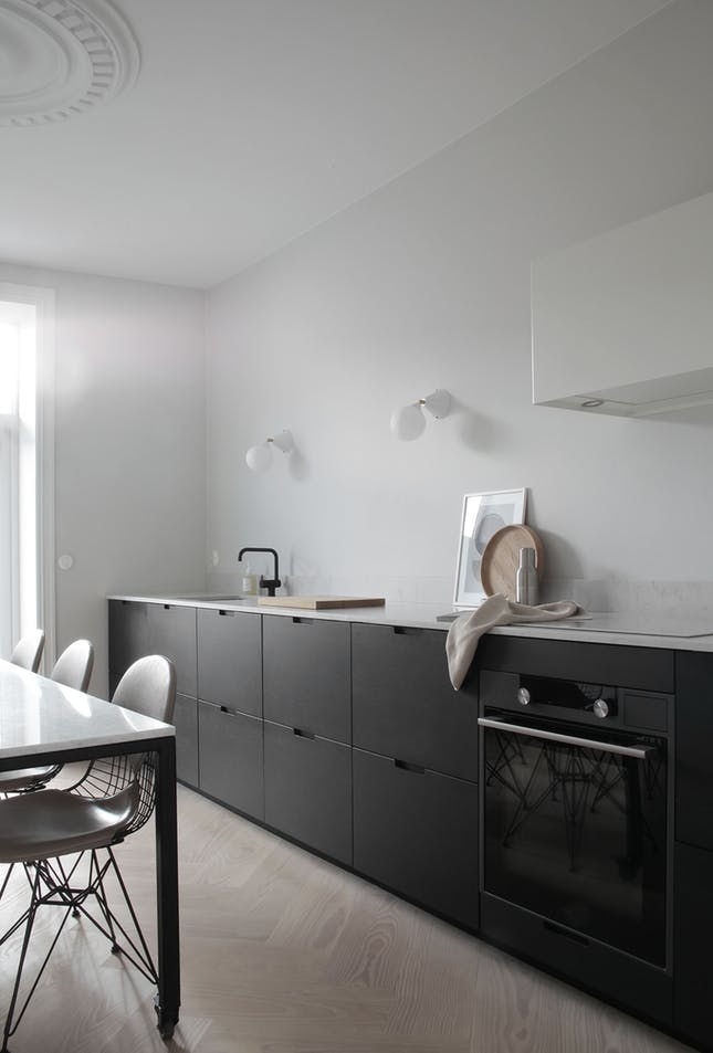 Kontrasten giver dit køkken et spændende look, der virker yderst elegant.